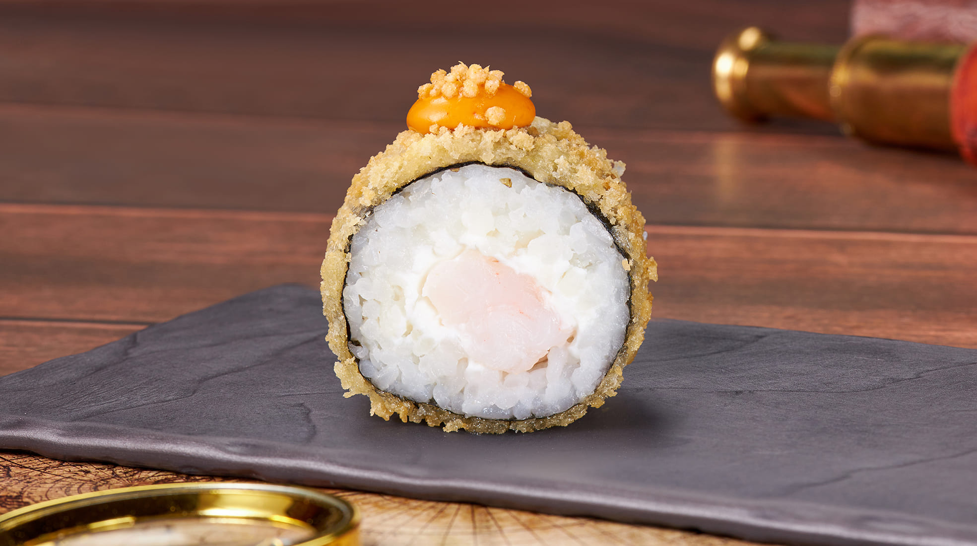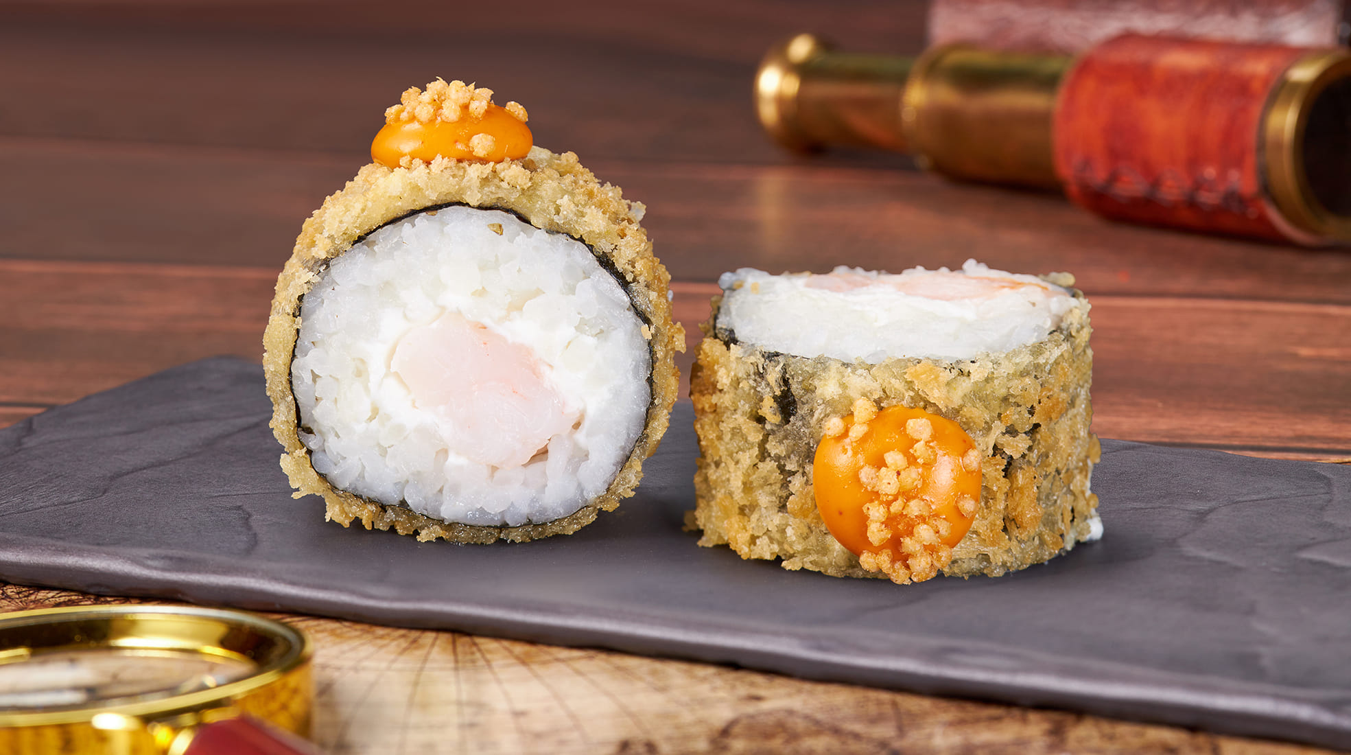 Состав: Крем чиз, креветки, темпурный кляр, панировочные сухари, спайси соус, рисовые шарики (том ям), рис, нори. *Не забудьте заказать имбирь, васаби и соевый соус. Они не входят в стоимость заказа. *Внешний вид блюда может отличаться от фото на сайте.